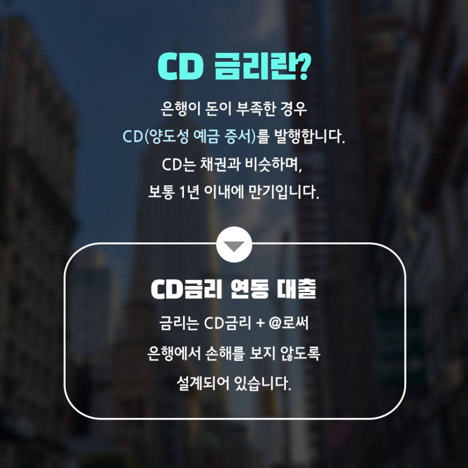 그래서 은행들은 CD금리 연동 대출이라는 상품을 만들었습니다.